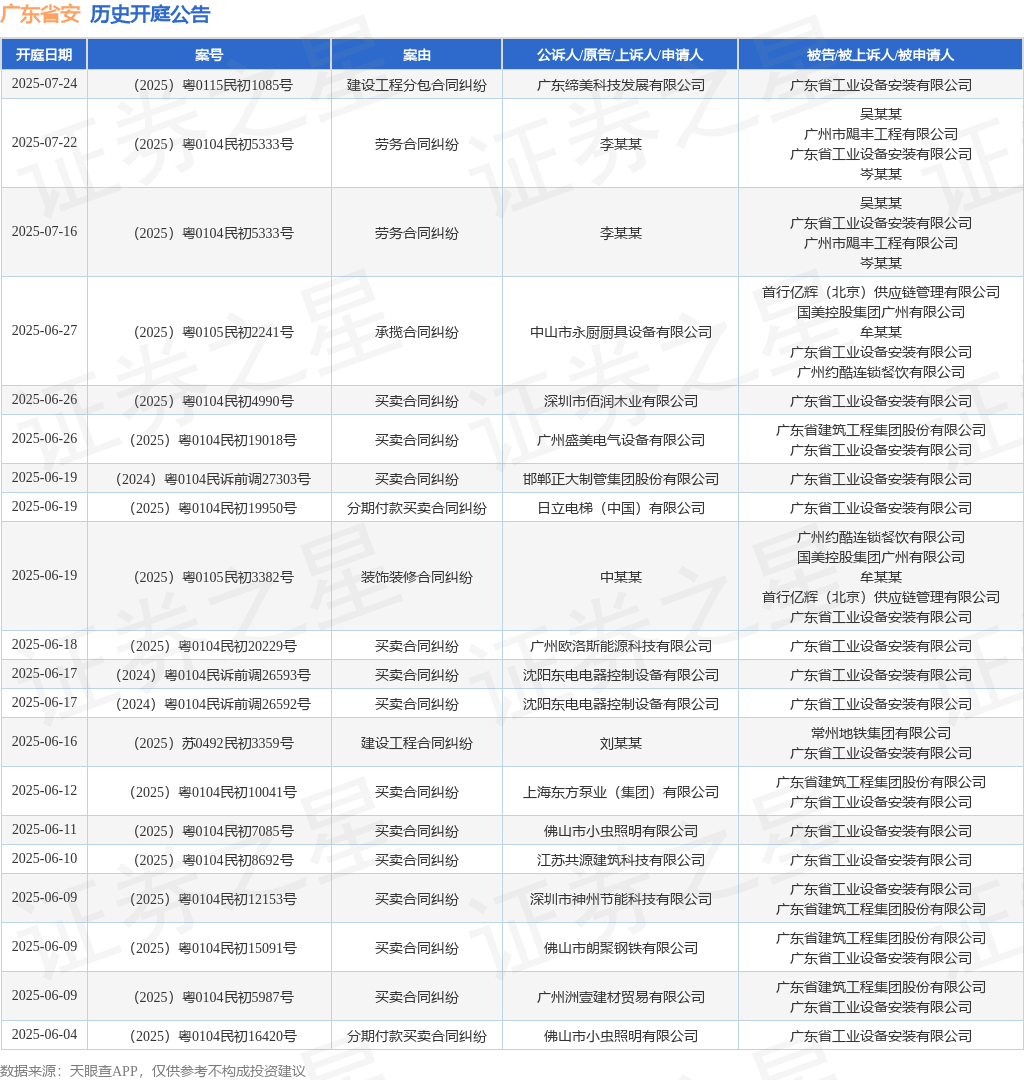 本站消息,根据天眼查APP显示,近日公布了一则广东省工业设备安装有限公司作为被告/被上诉人的开庭公告,详细内容如下: